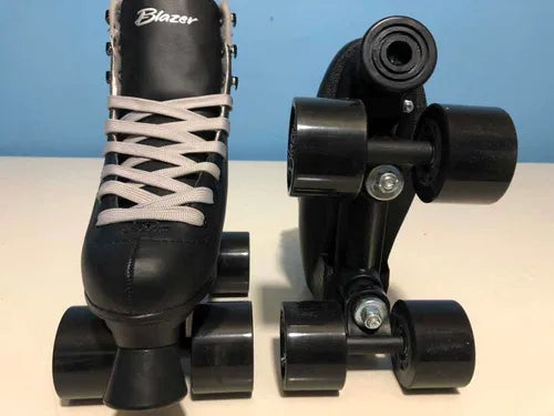 Deslízate con estilo y comodidad usando los Patines Roller Blazer 4 ruedas. En negro clásico con agujetas grises que dan un toque único, estos patines cuentan con freno para mayor seguridad. Perfectos para quienes buscan diversión y un look blazer que destaca en cada vuelta. ¡Prepárate para rodar con actitud!